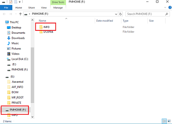 - Under Devices, click PMHOME, and then click the INFO folder.